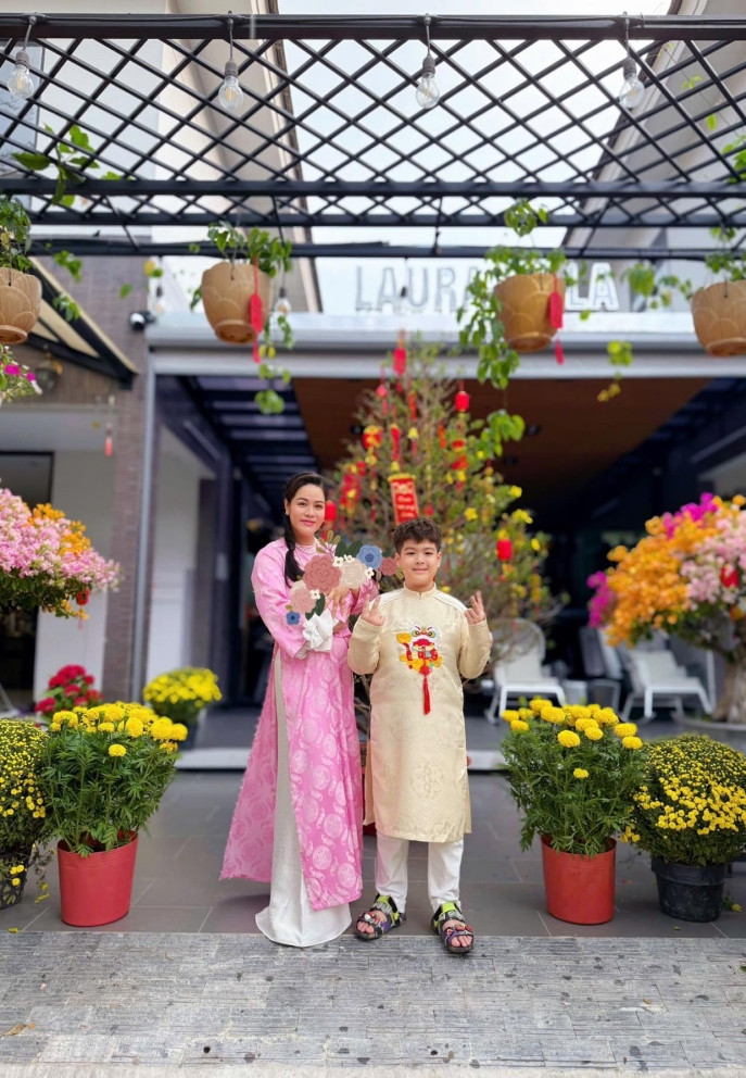 Dù bận rộn công việc, Nhật Kim Anh cố gắng chu toàn trách nhiệm làm mẹ. Con trai lớn của cô hiện sống cùng bố ở Cần Thơ, cũng mới vừa từ quê lên thăm mẹ và em gái.