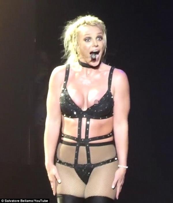 Tuy nhiên, trong đêm diễn tối thứ 6 (giờ địa phương), nữ ca sĩ 36 tuổi gặp trục trặc về trang phục mà cô không hay biết. Trong vũ điệu sôi động nhảy cùng các vũ công nam, không may chiếc áo của Britney đã bị lộ một phần ra ngoài