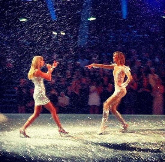 4. Tuy nhiên, vào tháng 12 năm 2013, T-Swift tham dự với tư cách khách mời tại Victoria’s Secret Fashion Show. Trong show diễn đó nổi bật nhất tất nhiên là siêu mẫu Karlie Kloss. Và lần đầu tiên hai người gặp nhau chính là vào đêm định mệnh đó. Trước đó họ chưa từng gặp nhau nhưng họ đã chụp ảnh cùng nhau như thể đã là BFF của nhau nhiều năm qua rồi vậy!
