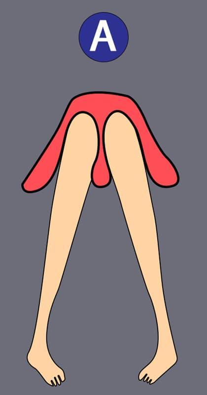 Đùi khép lại, hai chân tạo thành hình chữ V ngược