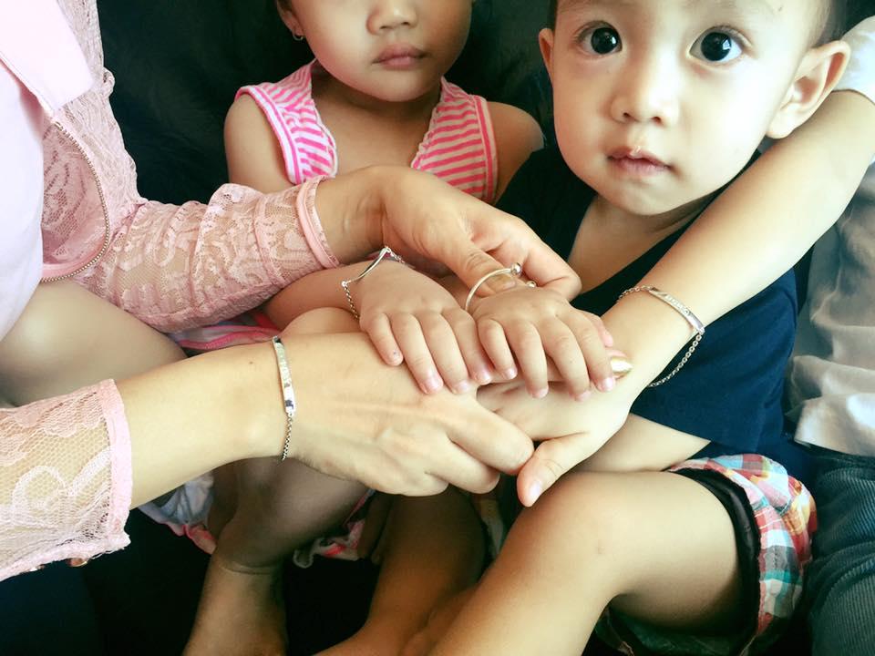 Sáng nay mẹ tặng quà 1/6 cho các con, cả bộ vòng bạc xinh xắn cho bốn mẹ con mình.