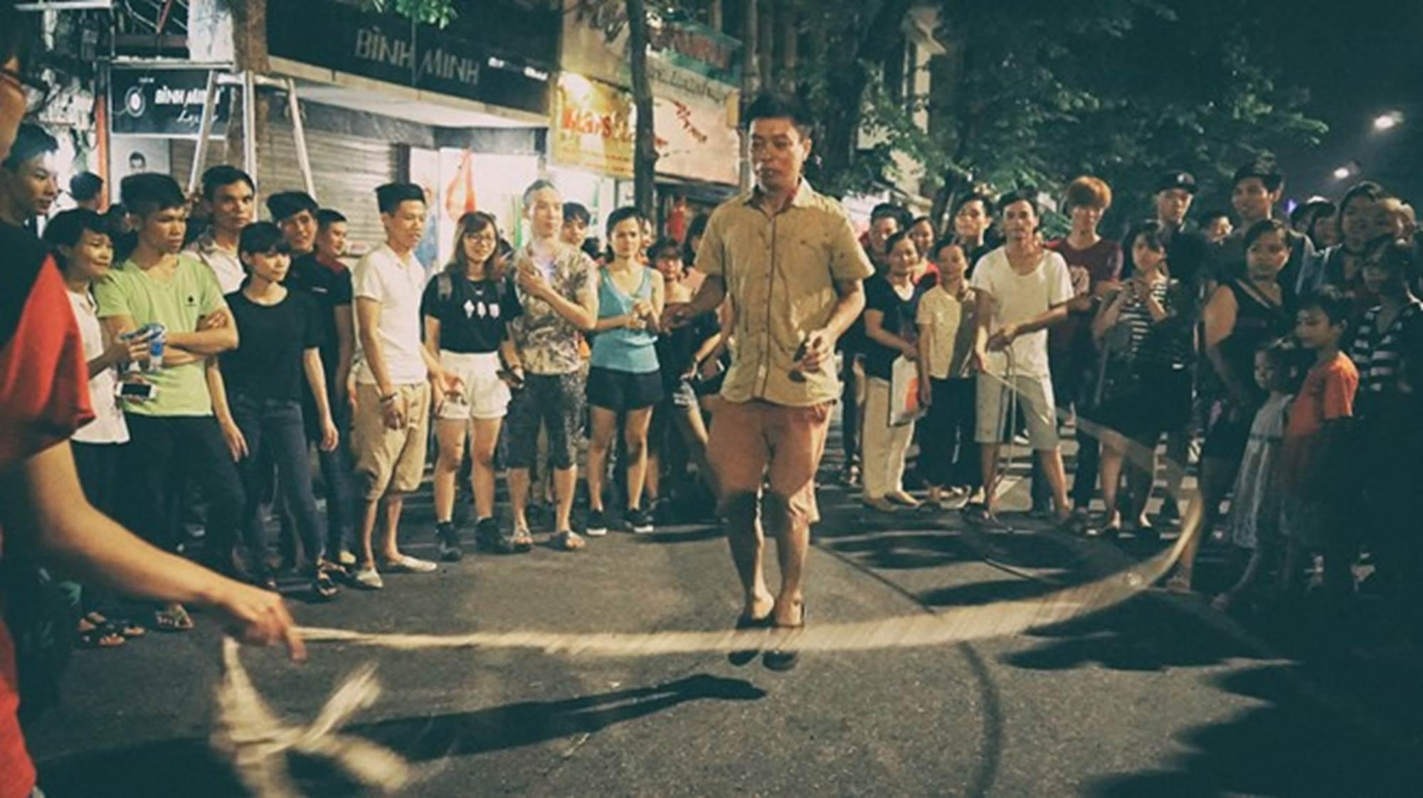Nhiều gia đình mang dây đến phố đi bộ để dạy con nhảy. Không gian trò chơi dân