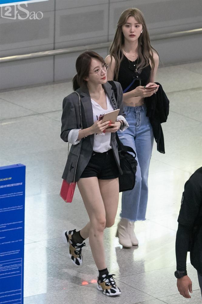 LE vẫn với phong cách sexy thường thấy, Hani, Junghwa và Hyelin tranh thủ cập nhật thông tin.