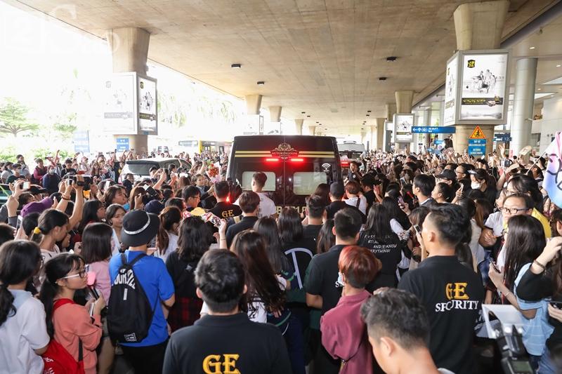 Mặc dù đã lên xe nhưng các thành viên vẫn hạ thấp cửa kính chào khán giả