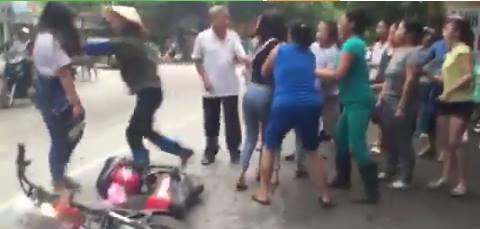 Tuy nhiên, hai nữ sinh đi xe đạp điện quay lại chửi bới và lao vào đánh hội đồng nữ sinh áo đen. Thấy vậy rất nhiều người dân chạy vào can ngăn quyết liệt nhóm nữ sinh này mới chịu dừng lại.