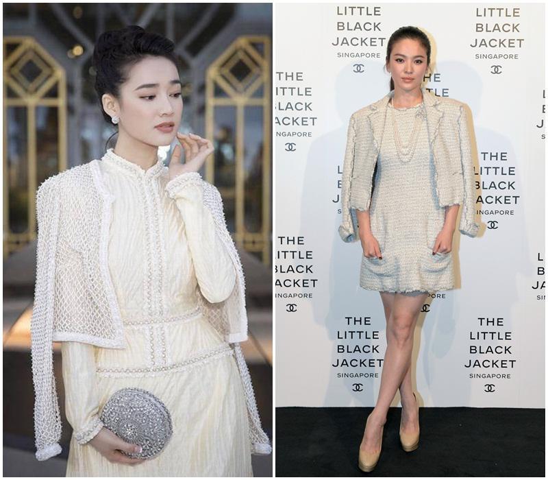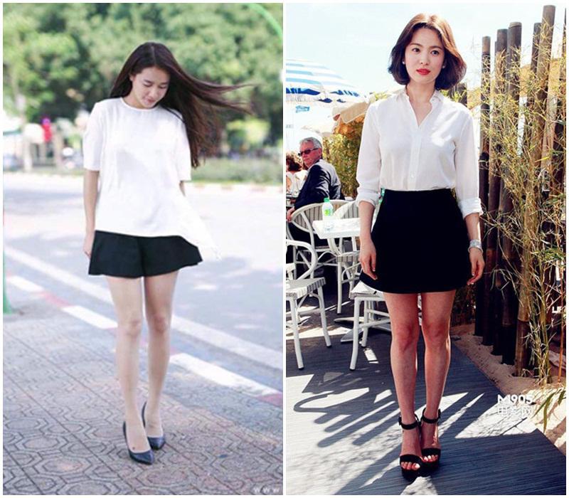 Song Hye Kyo và Nhã Phương thường phối một cây màu trắng.