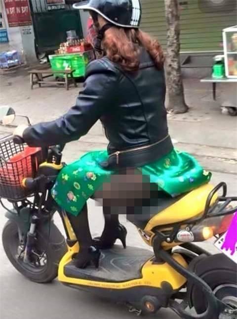 Còn nhớ, cách đây chưa lâu, người phụ nữ mặc áo dài ngồi trên chiếc xe đạp điện nhưng lại "bỏ quên" chiếc quần đi kèm.