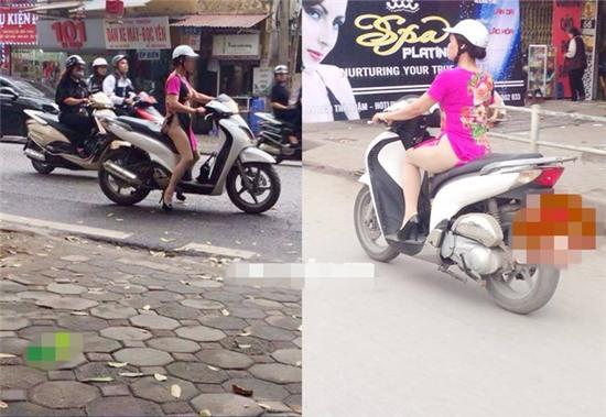 Theo đó, hình ảnh người phụ nữ ngồi trên xe SH, mặc áo dài kèm với quần tất da chân khiến cho ai đó nếu chỉ kịp nhìn lướt qua sẽ nghĩ rằng "cô ấy đang để không".