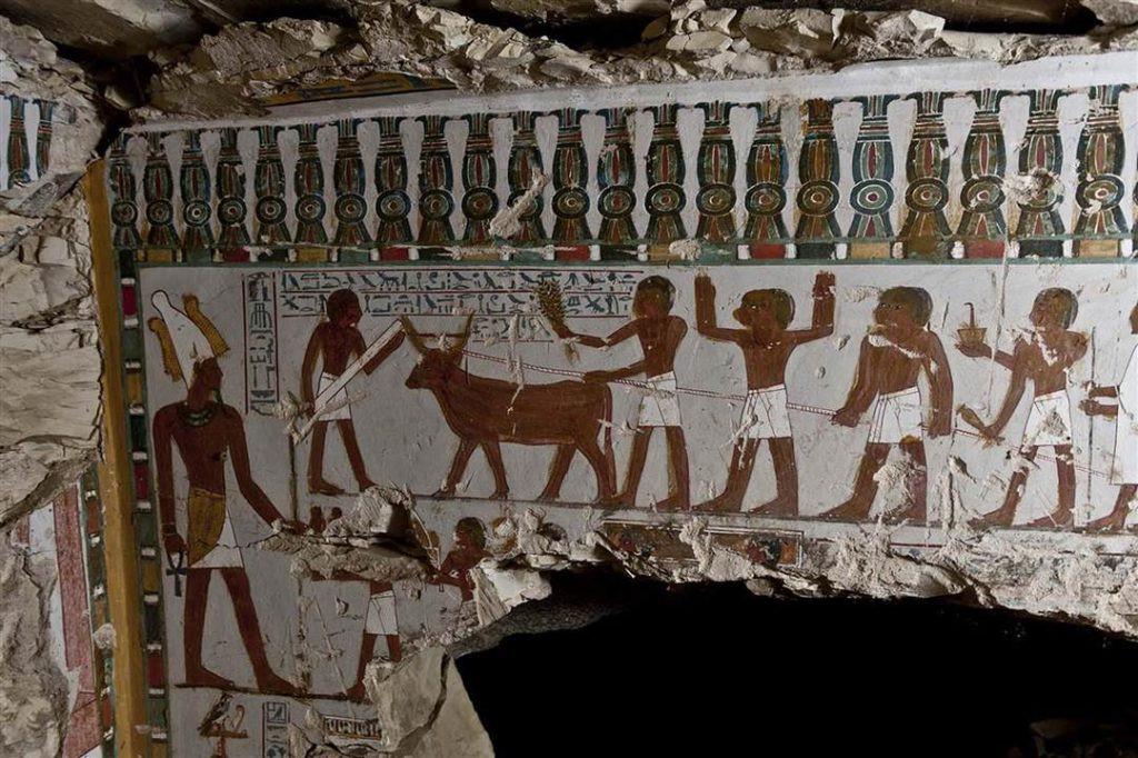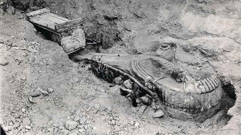 Người được chôn ở Qurna: Năm 1908, nhà Ai Cập học Flinders Petrie phát hiện ra một khu lăng mộ hoàng gia. Hai quan tài trong mộ có niên đại trước thời vua Tut khoảng 250 năm. Một xác ướp là phụ nữ và một xác ướp là trẻ em, có thể là con của người phụ nữ này. Cả hai đều đeo trang sức bằng vàng và ngà voi, thể hiện tầm quan trọng của họ. Tuy nhiên, các mô tả trong mộ về thân phận của họ đã bị hư hại nặng, chỉ biết rằng đây là nơi chôn vợ của vua. Ảnh: Artnetnews.