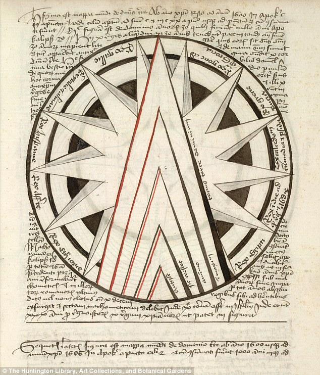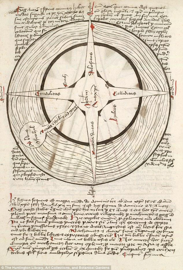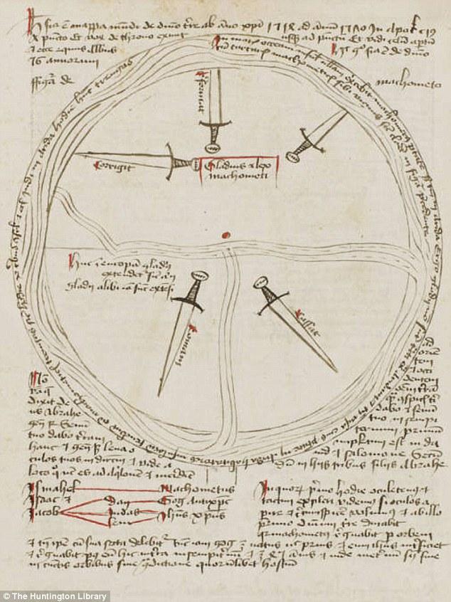 Một hình vẽ khác trong cuốn bản thảo mô tả “Sword of Islam” (Thanh kiếm Hồi giáo) chinh phục Châu Âu, tiếp theo là sự nổi lên của Antichrist, một hình tam giác lớn kéo dài từ cực này sang cực kia.