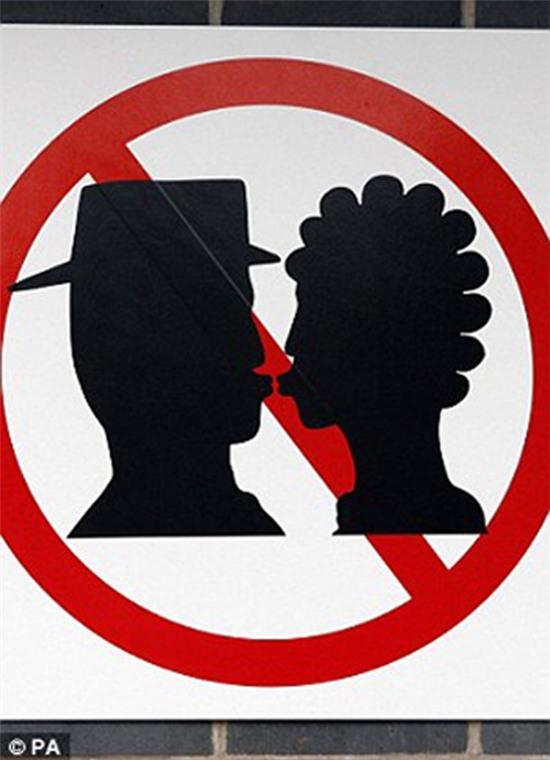 10. Cấm hôn nhau ở đây. Chắc các cặp đôi thường đưa nhau đến đây để hôn nên người ta phải làm cái biển cấm này.