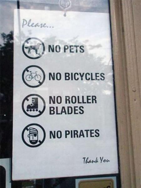 3. Cấm động vật, cấm xe đạp, cấm đi giày trượt patin và... cấm cả cướp biển các bạn ạ.