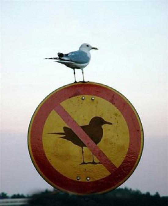 5. Cấm chim đậu.... Có khi nào loài chim ở đây thông minh đến độ hiểu được biển báo?