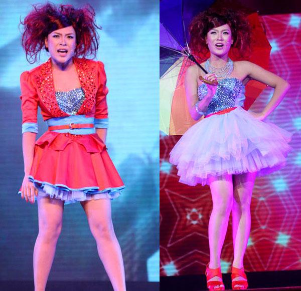 sát cơ thể. Mỹ Tâm nên che lấp khuyết điểm bằng những bộ váy xoè điệu đà.