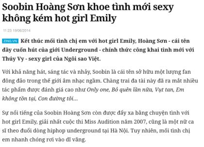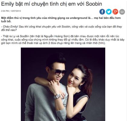 Cả hai đều là những ca sĩ trẻ được yêu thích tại thời điểm đó. Nhưng đến giữa năm 2013 cặp đôi mới công khai đã ở bên nhau được một năm rồi. Và điều gây chú ý hơn là trong cuộc tình này Soobin (1992) là chàng phi công lái máy bay khi kém người yêu Emily (1989) đến 3 tuổi.