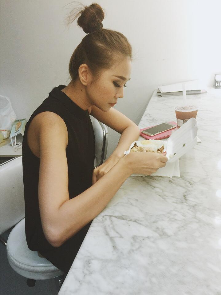 Đôi lúc dư chút thời gian, cô tranh thủ chạy ra quán ăn tiếp tế cho dạ dày