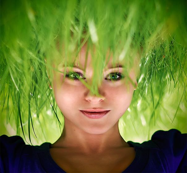 Mái tóc giả làm từ cỏ xanh tự nhiên hoàn toàn đó nha!