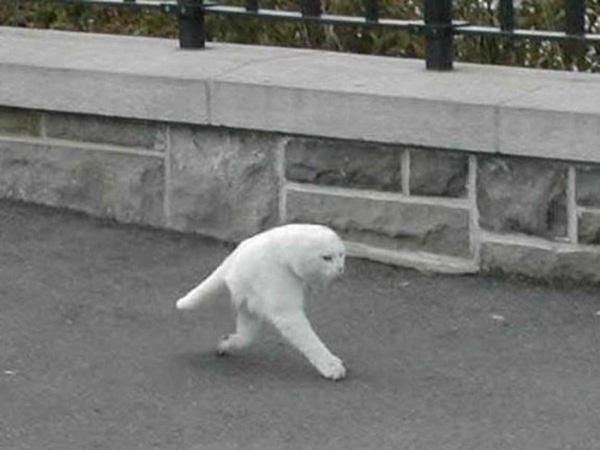 Rõ ràng là một nàng mèo trắng xinh xắn đang khoan thai bước đi vậy mà vào ống kính lại thành sinh vật hai chân đáng sợ thế này đây.