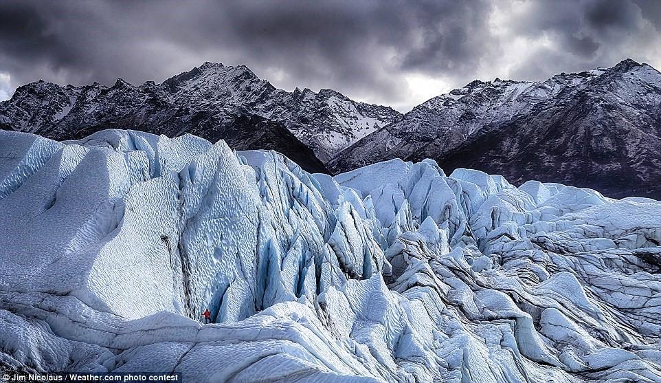 Nhiếp ảnh gia Jim Nicolaus ghi lại hình ảnh một người đơn độc leo sông băng Matanuska ở Alaska, Mỹ.