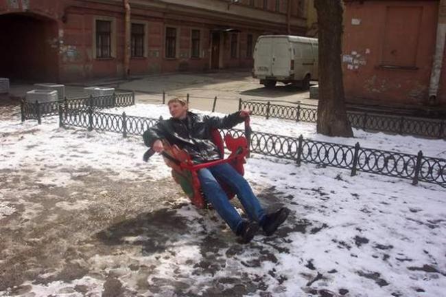 Nên nhớ là xích đu này chỉ dành cho "trẻ con" thôi nhé.