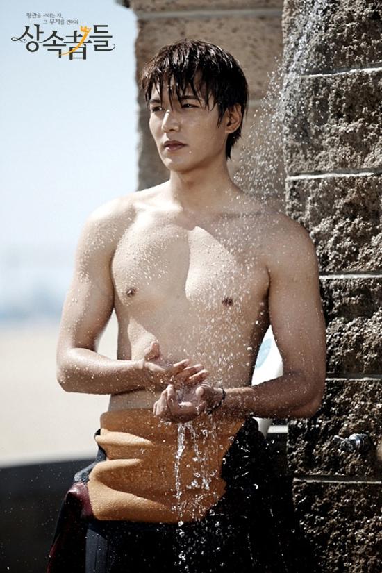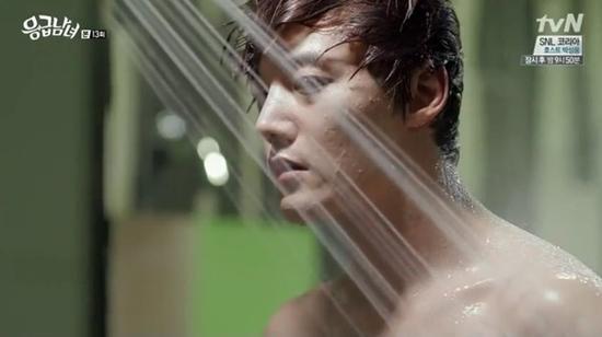 Trong "The Heirs", nhân vật của Lee Min Ho đã có cảnh tắm ở nơi công cộng sau khi đi lướt sóng. Cảnh tắm ngoài trời này đã khiến nhiều fan nữ "ngây ngất". Nếu được tận mắt chứng kiến cảnh tắm lộ thiên này của anh ấy, chắc hẳn nhiều người sẽ phải ngất xỉu.