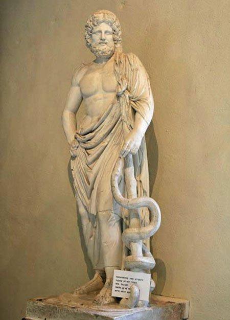 Tượng vị thần Esculape và cây gậy có con rắn quấn quanh