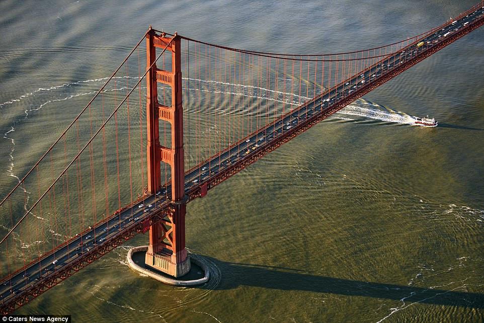 Nhiếp ảnh gia 42 tuổi đã đi đến nhiều quốc gia như Anh, Tây Ban Nha, Iceland để chụp ảnh cầu. Đây là cầu Cổng Vàng, cây cầu nổi tiếng của nước Mỹ, xuất hiện rất nhiều trong các tác phẩm điện ảnh, âm nhạc. Cầu được hoàn thành vào năm 1937, dài 2.737 m, cao 67 m so với mực nước bên dưới.