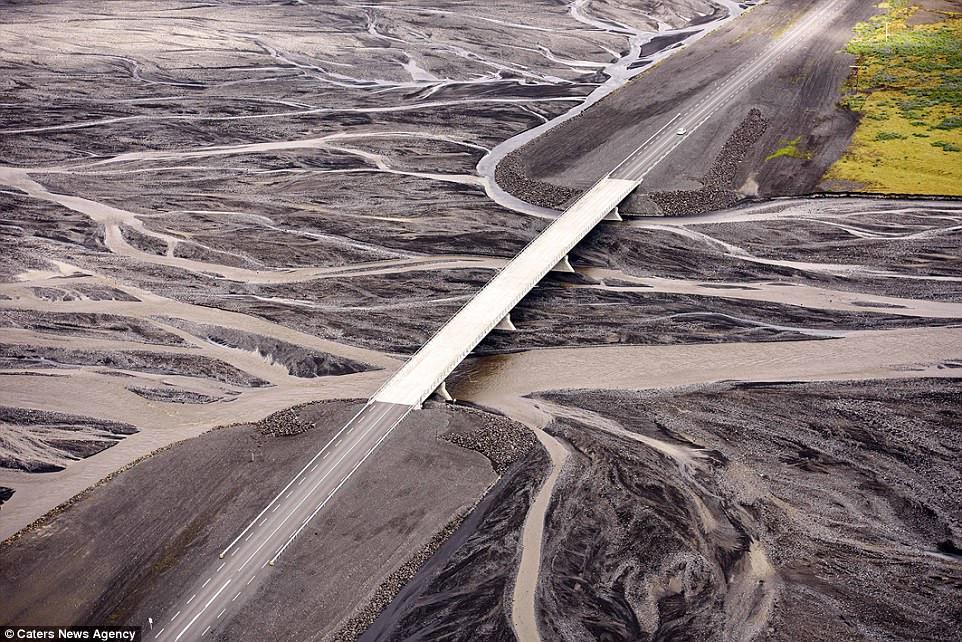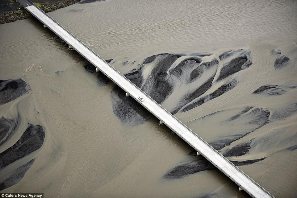 Vẻ đẹp ấn tượng của một cây cầu chạy qua dòng sông băng ở miền Nam Iceland.