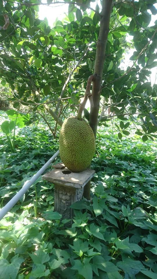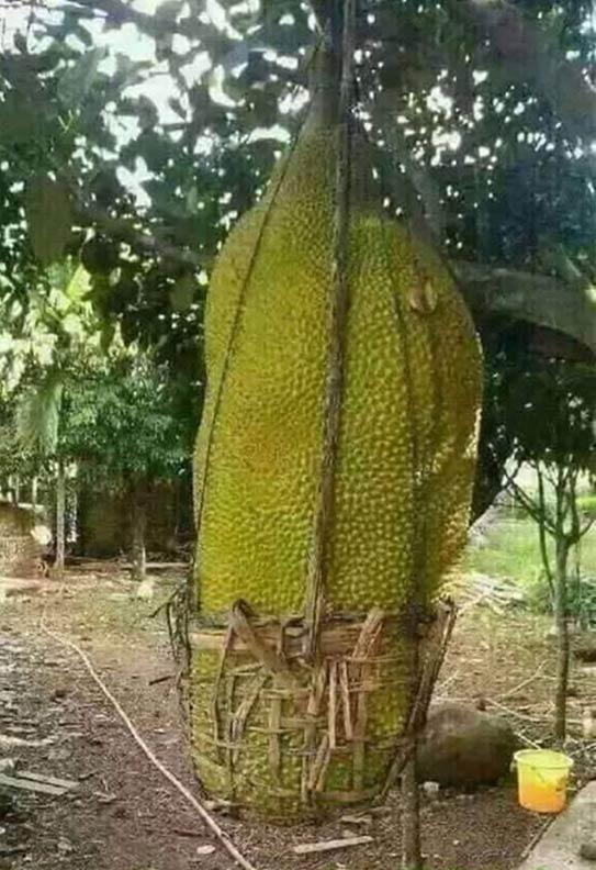 Cuộc sống khó khăn quá nên trái mít cần được nâng đỡ từ nhỏ ấy mà.