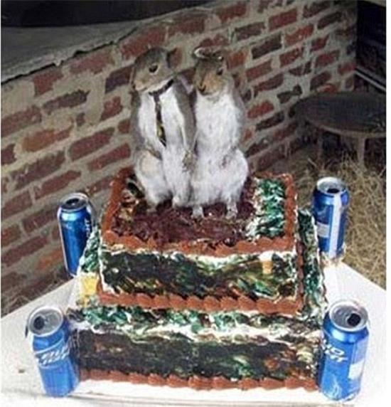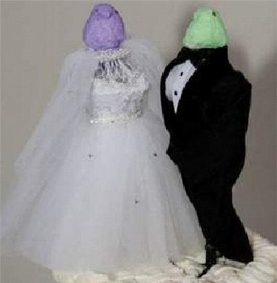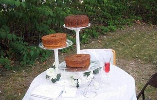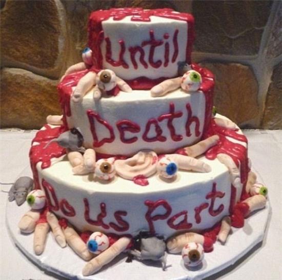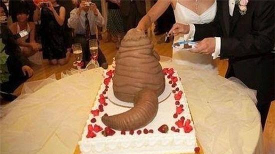 Không biết chiếc bánh có hình dáng "mất vệ sinh" này có mùi vị ra sao? Khách mời thi nhau cầm máy ảnh chụp lại chiếc bánh kỳ lạ này. Cặp đôi này có ý gì khi chiêu đãi thực khách chiếc bánh cưới làm hoàn toàn từ thịt tươi và rau sống nhỉ? Trên bánh viết "cho đến khi cái chết chia lìa đôi ta" nhưng chỉ mới nhìn qua thôi đã muốn "chia lìa" rồi. Rốt cuộc ý tưởng của thợ làm bánh là cô dâu sẽ giữ lấy chú rể bên bờ vực thẳm, hay là đẩy xuống? Tối giản đến mức không thể gọi đây là bánh, chứ đừng nói là bánh cưới. Lỗi sai chính tả tai hại nhất mọi thời đại. Thay vì chúc mừng đám cưới đôi vợ chồng trẻ thì người làm bánh lại có ý chúc mừng kỹ năng làm vườn của họ thì phải. Thậm chí còn có hoa hồng và nhiều lá xanh. Có khi nào đôi vợ chồng này đều sinh năm con chuột? Thay vì trang trí búp bê cô dâu chú rể, một cặp vợ chồng nhà chuột đứng trang nghiêm trên chiếc bánh. Khách dự tiệc hẳn sẽ biến sắc khi được mời ăn chiếc bánh này. Phải chăng thợ làm bánh đã làm nửa dưới, còn nửa trên để bé nhà mình tự tay sáng tạo? Không biết đầu cô dâu, chú rể bay đâu mất rồi. Chỉ làm mỗi bánh thôi thì nhàm chán quá phải không? Không biết ai là người chiến thắng trong trò chơi vương quyền đẫm máu này đây.