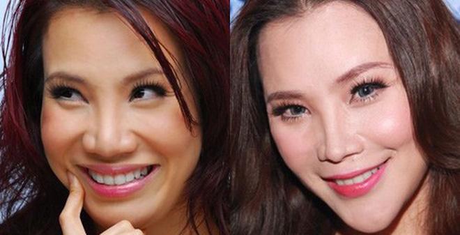Ca sĩ Hồ Quỳnh Hương cũng mất đi vẻ đẹp tự nhiên vốn có bằng gương mặt ngày càng giả với nhiều khuyết điểm da chảy xệ, mũi siêu vẹo, cằm nhọn.