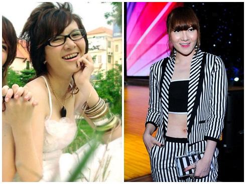 Từ góc nghiêng có thể thấy rõ chiếc cằm dài nhọn như muốn rơi khỏi gương mặt của người đẹp 9x, khác hẳn với gương mặt tròn đáng yêu thời mới nổi.