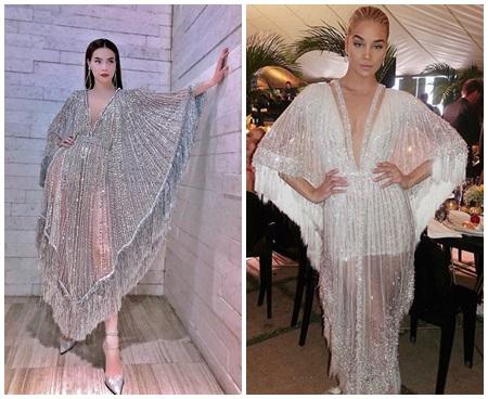 Gần đây nhất, mỹ nhân họ Hồ xuất hiện ấn tượng trong bộ váy xuyên thấu ánh kim lấp lánh với điểm nhấn là lớp viền tua rua. Được biết, đây là một thiết kế của Lý Quý Khánh đã nhiều năm gắn bó cùng nữ ca sĩ. Bộ cánh nhận được nhiều lời khen ngợi vì tôn lên vóc dáng gợi cảm và vẻ đẹp uy quyền của giọng ca "Cả một trời thương nhớ". Tuy nhiên, nhanh chóng sau đó cư dân mạng nhận ra bộ cánh này có nhiều điểm tương đồng với thiết kế của Labourjoisie mà người mẫu Jasmine Sanders từng diện trước đó tại buổi tiệc của Vogue.