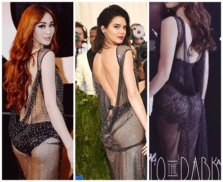 Gần đây nhất, người đẹp bị vướng nghi án mặc váy đạo nhái với thiết kế "xuyên không" mà siêu mẫu Kendall Jenner từng mang đi chinh chiến ở thảm đỏ Met Gala 2017. Người đẹp Khánh My cũng từng gây xôn xao khi diện đầm xuyên thấu mà nhìn khán giả sẽ nghĩ ngay đến bộ cánh của Kendall Jenner.