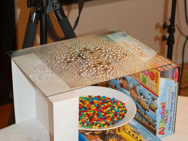Cồng thức để tạo ra là một đĩa kẹo bảy màu và tấm kính đầy nước.