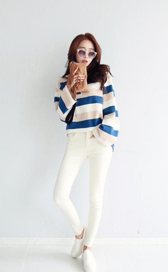 Một bộ đồ chất liệu len dệt kim mỏng là item lý tưởng dành cho các quý cô dáng người mảnh khảnh. Bạn gái dáng người mũm mĩm thì không nên mặc style này bởi nó dễ tố thân hình bạn nhiều mỡ thừa. Để thực sự sành mốt, bạn nên lựa chọn giày, túi xách tông xuyệt tông với gam màu trang phục nhé.