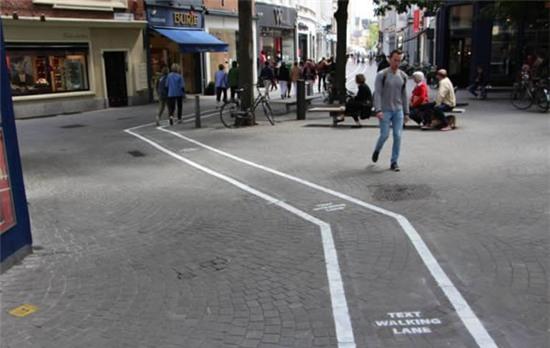 Năm 2015, một doanh nghiệp bán điện thoại di động tại Bỉ, đã quyết định chi tiền đầu tư làm làn đường cho người nhắn tin tại thành phố Antwerp. Làn đường được đánh dấu bằng dòng chữ: “Làn đi bộ cho người nhắn tin”. Người đi vào làn này có thể thoải mái nhắn tin mà không sợ gây nguy hiểm cho người khác. Động cơ của việc làm này là nhiều người đã hỏng điện thoại vì va chạm với người khác.