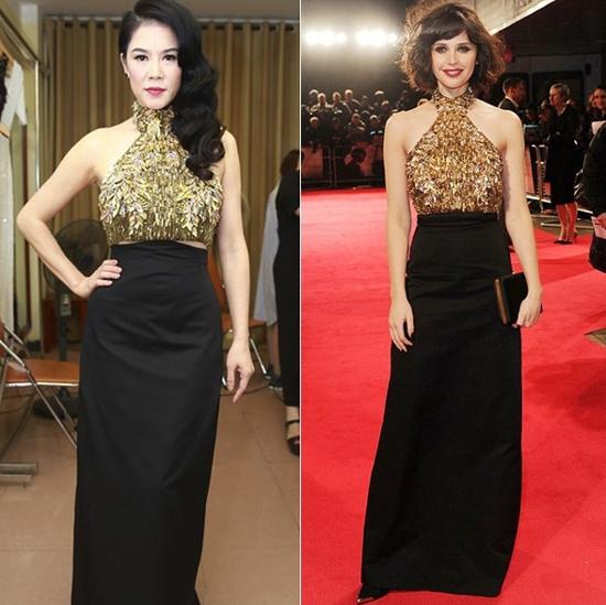Nữ ca sĩ Thu Phương "mặc chung" váy với người đẹp Anh người Felicity Jones.
