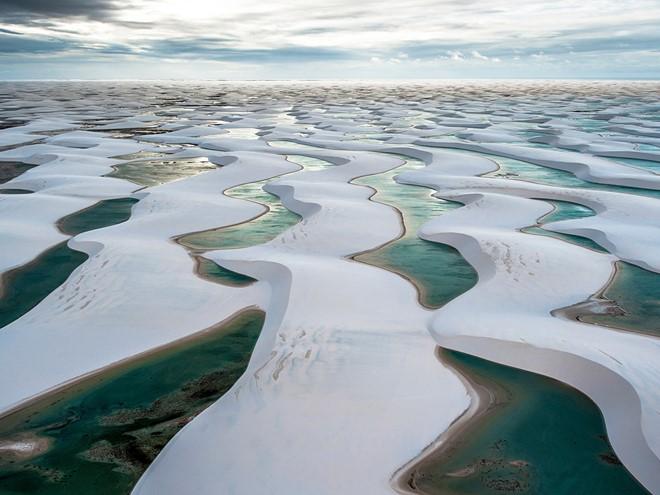 Công viên quốc gia Lençóis Maranhenses, Brazil: Lençóis Maranhenses thuộc bang Maranhão là một trong những điểm đến hùng vĩ và độc đáo nhất thế giới, với 1.000 km2 cát trắng muốt, xen lẫn những hồ nước xanh biếc.