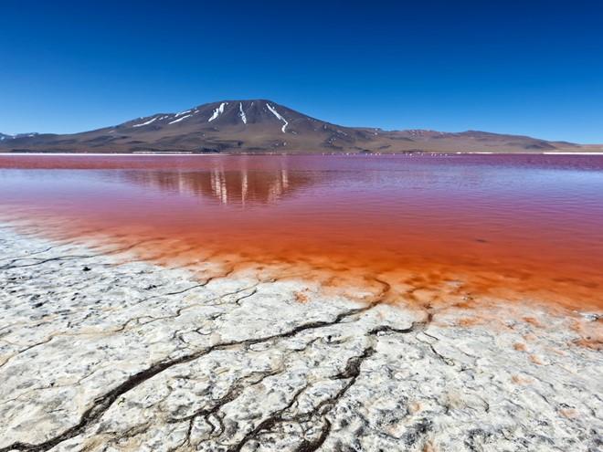 Laguna Colorada, Bolivia: Laguna Colorada là hồ nước mặn nằm ở độ cao gần 4.300 m so với mực nước biển, thuộc khu bảo tồn thiên nhiên Eduardo Avaroa Andean Fauna. Hồ nước này chỉ sâu chưa tới 1 m, có màu đỏ do một loại tảo sống trong nước mặn. Đây còn là nơi sinh sống của những con chim hồng hạc quý hiếm.