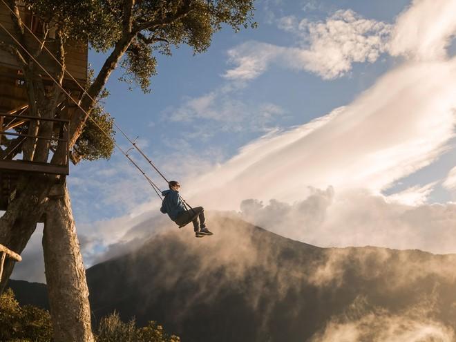 Xích đu End of the World, Baños, Ecuador: Buông xuống từ một ngôi nhà cây có tên Casa del Arbol và nhìn ra núi Tungurahua, chiếc xích đu ấn tượng này thu hút những người yêu thích cảm giác mạnh.