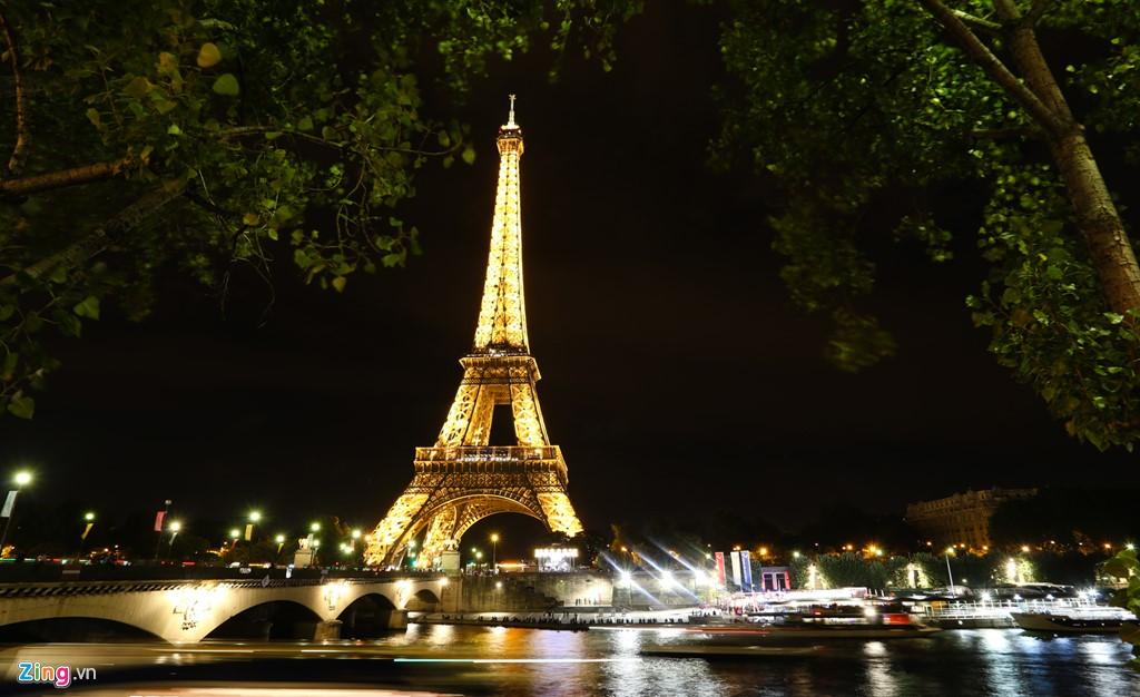 Vào ban đêm, tòa tháp lộng lẫy soi bóng bên dòng sông Seine. Từ khi xây dựng đến nay, đã có hơn 300 triệu du khách tới thăm tòa tháp này, và Eiffel thở thành công trình thu phí thu hút nhất thế giới.