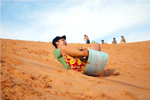 Đặt chân đến Mũi Né, các bạn trẻ có thể thoả sức vui chơi trựợt cát, thả diều, lái môtô địa hình ngắm toàn cảnh bình minh hay hoàng hôn trên sa mạc cát bao la thơ mộng và chụp thật nhiều hình ảnh đồi cát để lưu giữ hay chia sẻ với bạn bè.