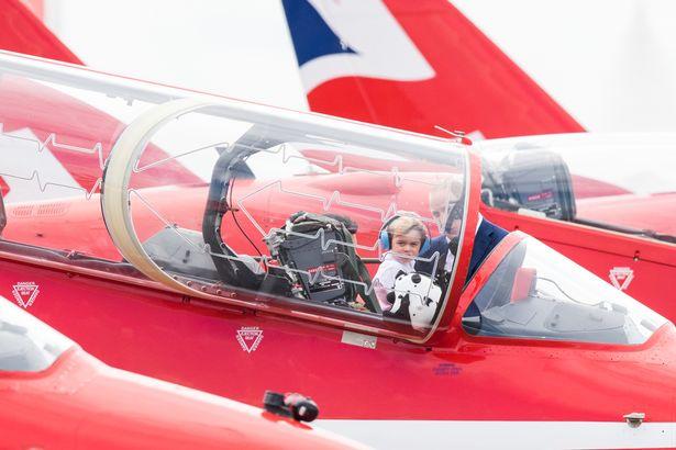 Hoàng tử bé có vẻ rất thích thú khi ngồi trong buồng lái của máy bay Red Arrows