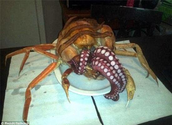 Món ăn kỳ dị trông như một quái vật với thân giống cua và vòi bạch tuộc.