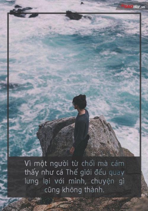 Trước đây luôn tự tin vào năng lực bản thân, làm gì cũng tốt hơn người khác rất nhiều. Vậy mà lỡ rung động một chút, bị người ta từ chối nhẹ nhàng đã thành như một kẻ thua cuộc. Cả tinh thần bỗng chốc như bị tuột dốc không phanh, tâm trí không còn chút minh mẫn nữa, làm việc gì cũng hỏng. Từ giây phút bị từ chối ấy trở đi cứ có cảm giác như tất cả mọi người đều đang chống lại mình.