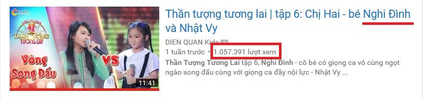 Phần thi mới nhất của Nghi Đình khi thể hiện bài hát "Chị Hai" tại vòng Song đấu cũng nhận được hơn 1 triệu lượt xem.