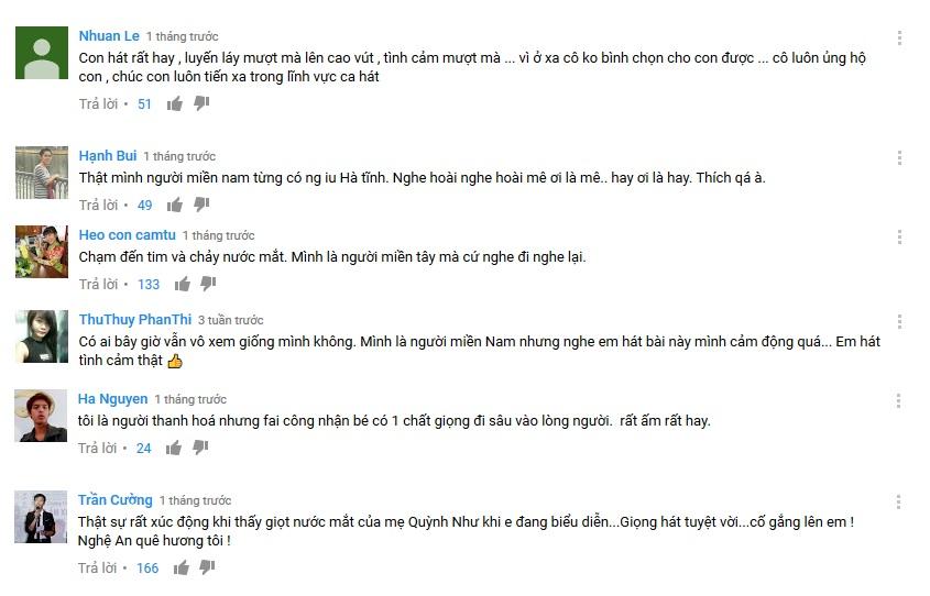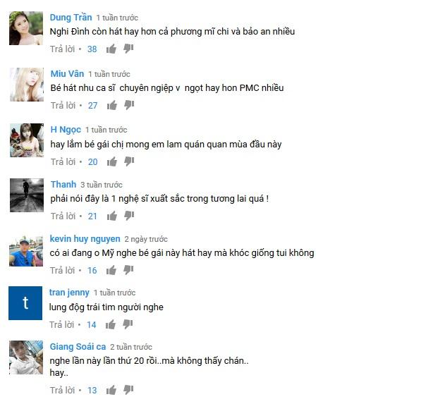 ... với rất nhiều bình luận khen ngợi giọng hát.