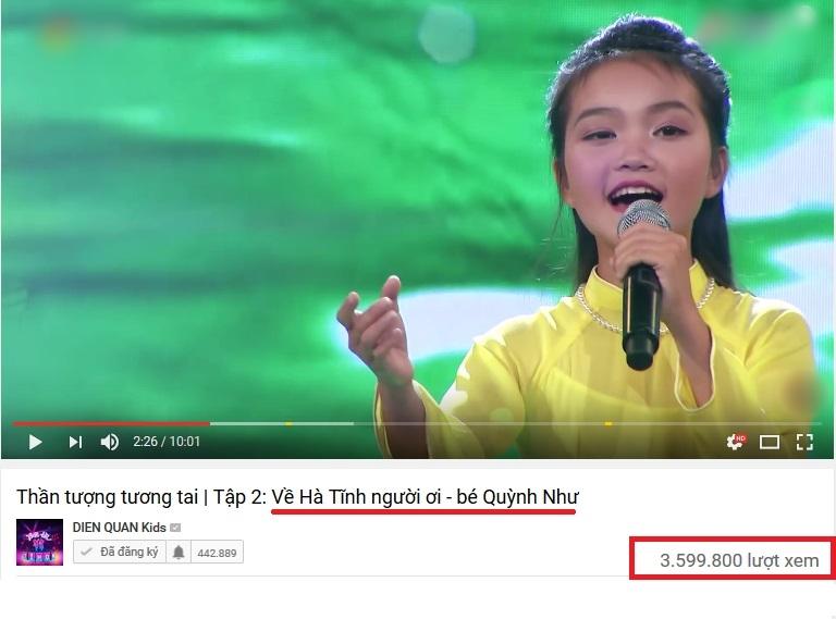 Quỳnh Như thể hiện ca khúc "Về Hà Tĩnh người ơi" đạt hơn 3, 5 triệu lượt xem trên Youtube.
