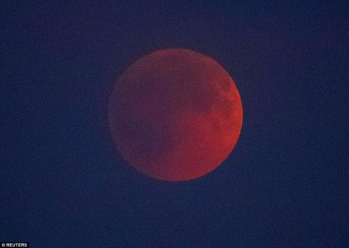 Nguyệt thực kéo dài hơn 5 tiếng, từ 00h14 đến 6h30, trong đó nguyệt thực toàn phần bắt đầu từ 2h30 đến 4h13, đạt cực đại vào 3h12. Sau đó, hiện tượng nguyệt thực một phần, nguyệt thực nửa tối xảy ra và kéo dài tới khoảng 6h30 sáng nay 28/7. (Ảnh: EPA)